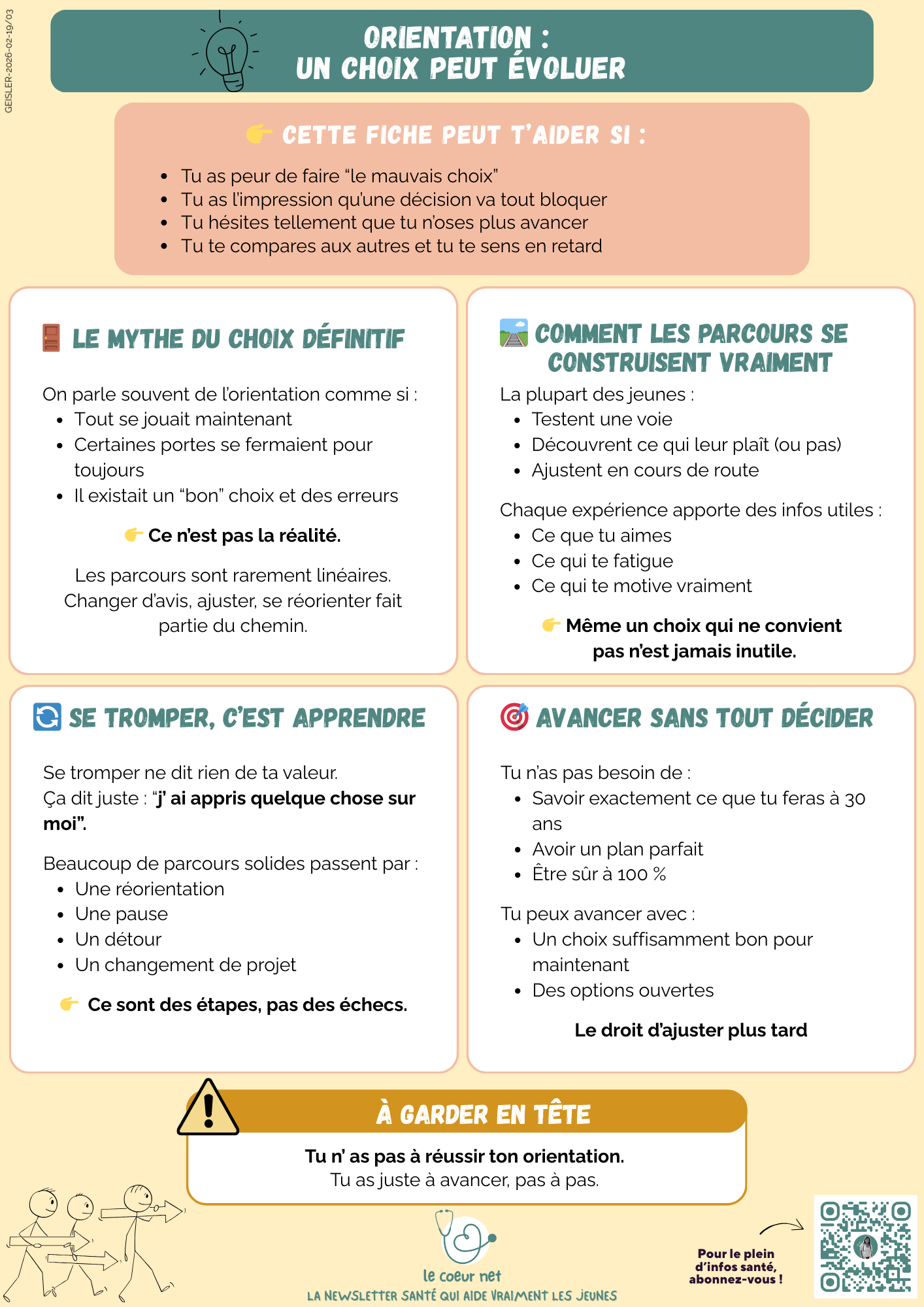 👉 Ils ont souvent l’impression que chaque décision est définitive. Alors qu’en vrai, presque tous les parcours peuvent se réajuster en route.